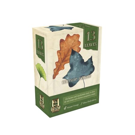 13 Leaves ist ein spannendes Kartenablegespiel für 3 bis 6 Spieler, bei dem Taktik, Timing und ein gutes Gespür für Zahlen gefragt sind. Wer es schafft, als Erster alle Karten von der Hand zu spielen, gewinnt die Partie. In der enthaltenen Experten-Variante wird über mehrere Runden hinweg um den Gesamtsieg gespielt.Jede Partie 13 Leaves besteht aus mehreren Runden, in denen die Spieler reihum Karten ausspielen. Wer am Zug ist, kann Karten mit dem gleichem oder höherem Zahlenwert ausspielen. Der zentrale Mechanismus basiert auf wachsenden Zahlenreihen, bei der nur Karten mit Werten gespielt werden dürfen, die gleich oder höher der Karten der aktuellen äußeren Reihen liegen. Die Anzahl der gespielten Karten muss dabei stets mindestens der Anzahl der Karten des bestehenden Stapels an der jeweiligen Seite entsprechen. Kann oder will ein Spieler keine Karten spielen, muss er passen und scheidet bis zur nächsten Runde aus – erhält aber eine Karte zurück auf die Hand. Wer seine letzte Karte erfolgreich ablegt, gewinnt die Partie.