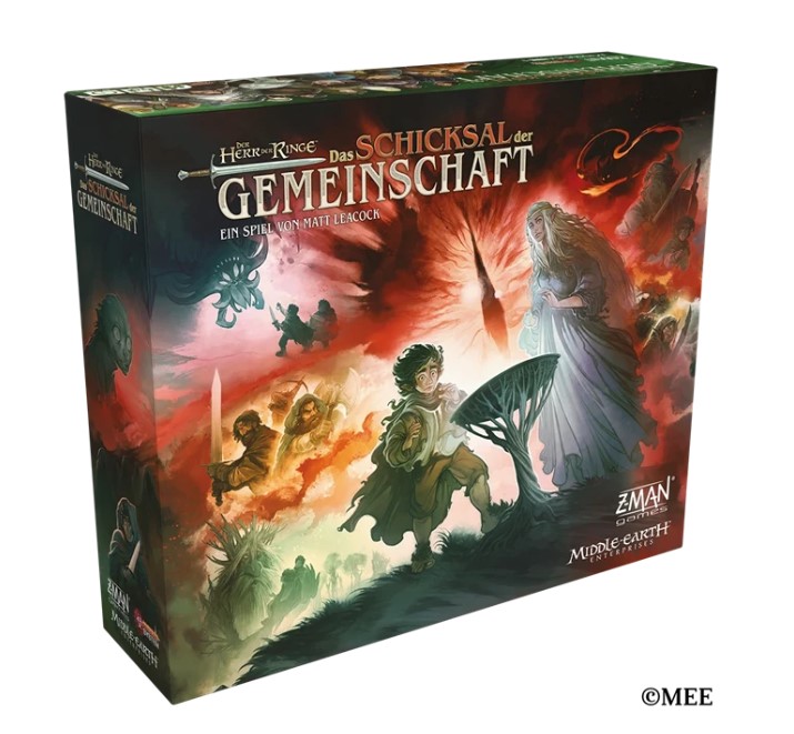 Herr der Ringe: Das Schicksal der Gemeinschaft ist ein kooperatives Spiel für 1–5 Personen, in dem jeder von euch 2 Charaktere aus Mittelerde verkörpert. Mit euren einzigartigen Fähigkeiten könnt ihr Frodo beschützen und an entscheidenden Orten Schlachten gegen eure Feinde austragen, immer auf der Hut vor den bedrohlichen Nazgûl und Saurons suchendem Auge. Dieses von Matt Leacock entwickelte Spiel bietet mit seinen 24 einzigartigen Zielen, 14 Ereignissen und 13 spielbaren Charaktere immer wieder neue Herausforderungen. Das Schicksal der Freien Völker hängt von eurem Heldenmut, eurer Freundschaft und eurer Entschlossenheit ab. Schafft ihr es, den Einen Ring ins Feuer zu werfen, oder wird sich sein Träger in den Schatten verlieren?"