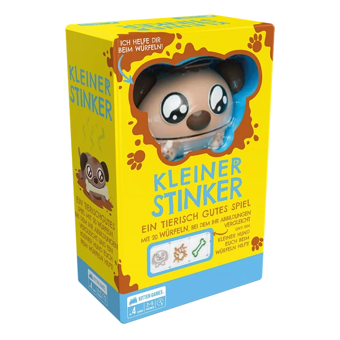 Legt die Würfel auf die Karten mit den jeweils passenden Abbildungen. Ihr habt einen Knochen gewürfelt? Glückwunsch, er wird dauerhaft vergraben. Aber passt auf die stinken Schlammpfützen auf, von der ihr mindestens eine würfeln müsst oder ihr bekommt ALLE Würfel von der Schlammpfützenkarte zurück. Alle Kleinen Stinker, die ihr gewürfelt habt, verteilt ihr unter den anderen Mitspielern. Wer von euch zuerst alle seine Würfel loswird, gewinnt. Etwas Würfelglück, ein paar kluge Entscheidungen und schon habt ihr das Spiel gewonnen!"