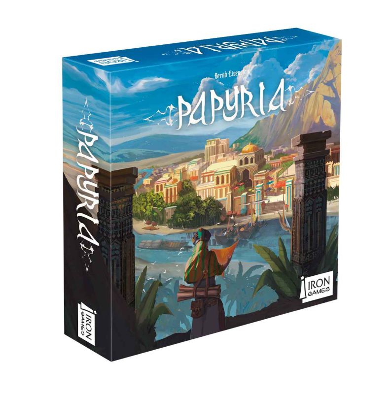 Mesopotamien um ca. 1500 vor unserer Zeit: Das Zweistromland an Euphrat und Tigris ist Heimat und Schmelztiegel verschiedener Kulturen und entwickelt sich prächtig. Fruchtbare Böden und moderne Bewässerungssysteme lassen die Landwirtschaft erblühen. Religion und Gelehrte genießen großes Ansehen und wichtige Errungenschaften wie die Schrift und das Rad sorgen für den Bau erster größerer Städte und regen Handel. In den Bergen lagert eine begehrte Handelsware: der edle „blaue Stein“ Lapislazuli (Lapis).In Papyria lenkt ihr die Geschicke eures Volkes, erkundet die Region mit Wanderern und Schiffen und schafft ein weitverzweigtes Kanalnetz. Ihr baut Tempel, Heiligtümer und Städte, bringt Erfindungen hervor und errichtet Bergwerke für das Lapis. Dieses kostbare Gestein und der wertvolle Schriftträger Papyrus führen eure aufstrebende Zivilisation zu Ruhm und Sieg.Während deines Zuges bewegst du deinen Wanderer oder dein Schiff. Auf dem Zielfeld wählst du zwei der drei möglichen Aktionen. Das kann ein neues Plättchen für die Auslage oder ein Multiplikator für eine spätere Wertung sein, der Bau einer Stadt, eines Tempels oder einer Mine oder die Produktion von Lapis oder Papyrus, die ihr für Gebäude, Sonderaktionen oder Zusatzwertungen benötigt.Das Spiel endet, sobald das letzte Gut von mehreren Feldern genommen wurde und eine bestimmte Anzahl an Spielende-Plättchen aufgedeckt und erfüllt wurden.Da ihr nach den Wertungen während des Spiels und einigen Schlusswertungen mit den meisten Punkten das Spiel gewinnt, ist das Timing sehr wichtig.